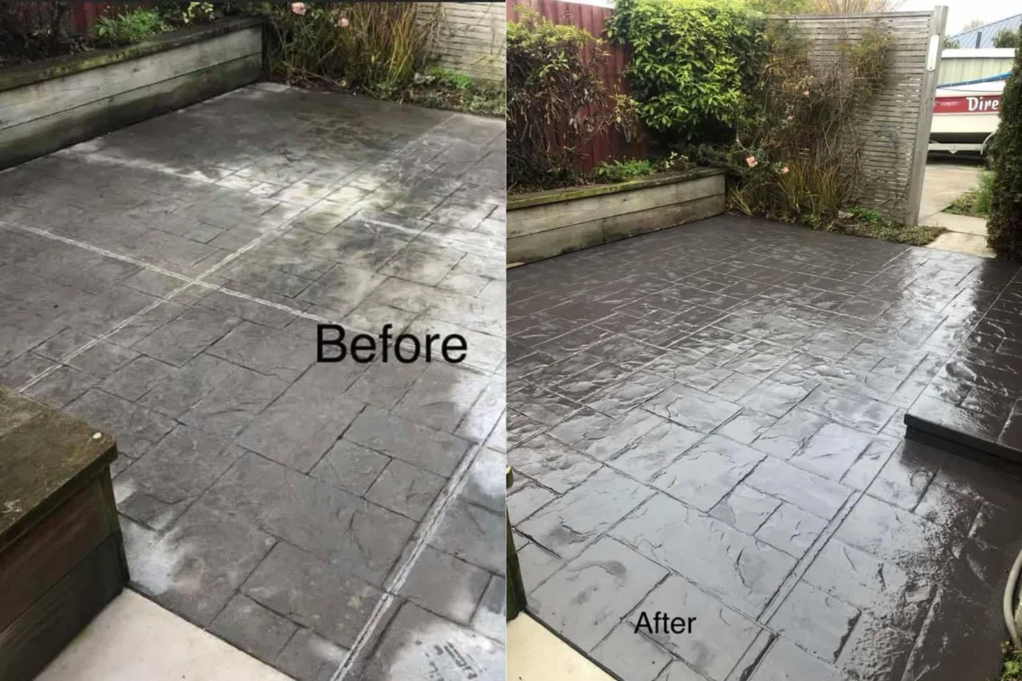 Tinted sealing, coloured concrete sealing, exposed aggregate concrete sealing.